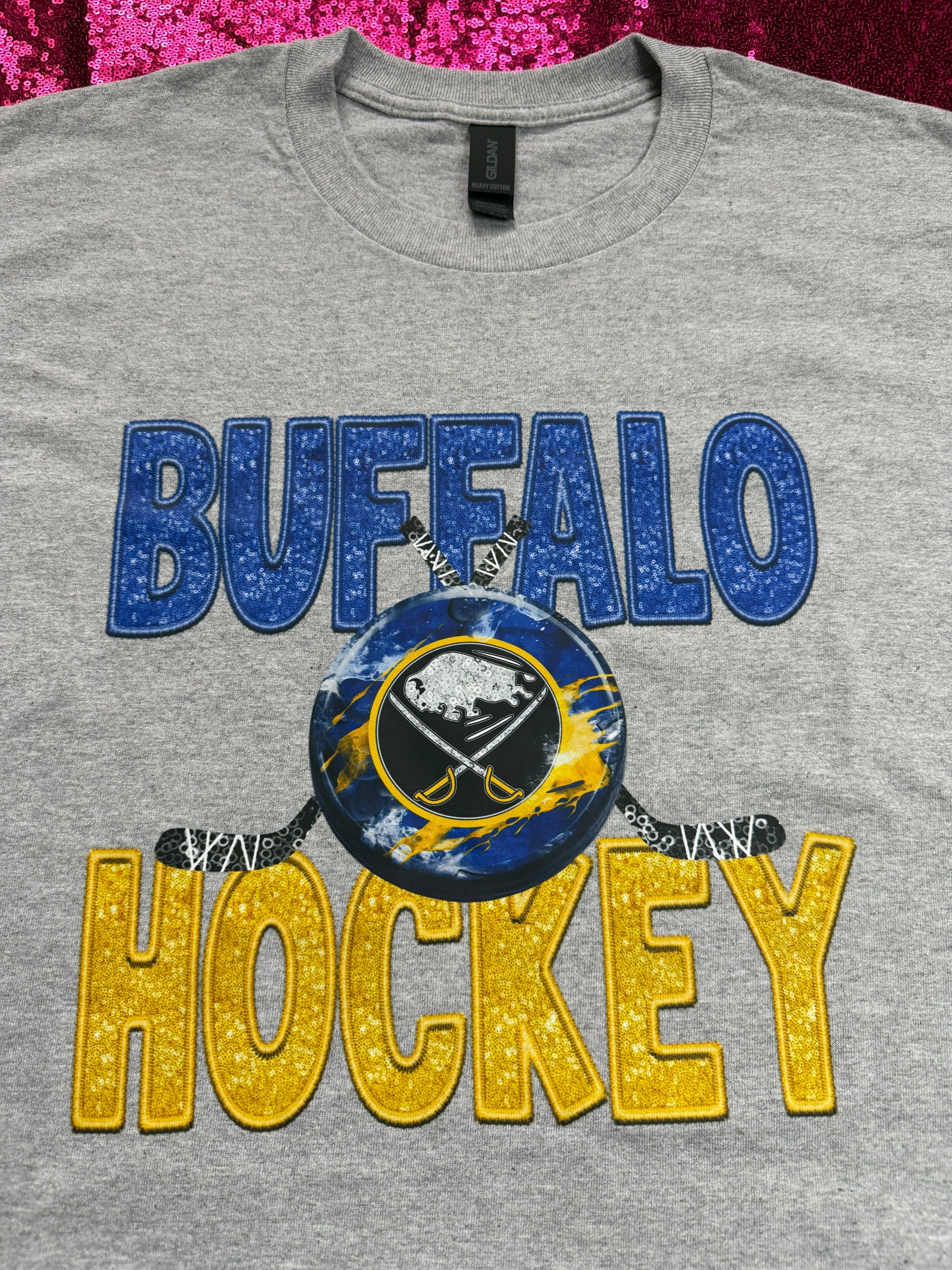 The Buffalo Hockey Statement Tee features a high-quality DTF (Direct to Film) graphic with vibrant color, crisp detail, and a smooth finish designed to last. This design brings strong Buffalo hockey pride front and center, making it perfect for game days, watch parties, and everyday wear.